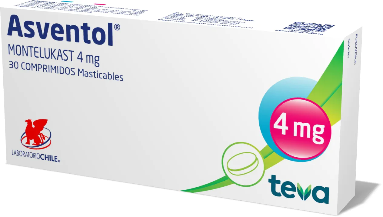 Asventol (Montelukast) comprimidos masticables está indicado en pacientes adultos y pediátricos de 12 meses de edad o mayores para la profilaxis y tratamiento crónico del asma. Montelukast está indicado para el alivio de los síntomas de la rinitis alérgica (rinitis alérgica estacional en adultos y pacientes pediátricos de 2 años de edad y mayores, y rinitis alérgica perenne en adultos y pacientes pediátricos de 6 meses de edad y mayores).